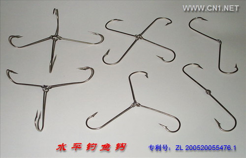 本发明提供了一种形状合理的钓鱼钩,此钓鱼钩在钓鱼时处于水平状态。利用这种钓鱼钩来钓鱼,鱼儿一口就能把包住鱼钩的饵料吞进口中,能大大提高钓鱼效率,增加钓鱼乐趣,是现有钓鱼钩的换代产品。