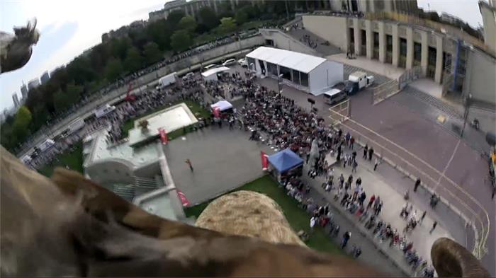 老鹰架摄像机航拍巴黎:从埃菲尔铁塔一跃而下