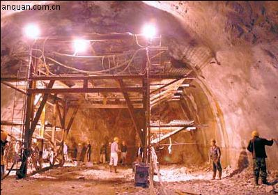鹤庆铁路隧道坍塌大营救1、2、3、4、5 6名工人已困在隧道内44小时,虽然有关部门日夜加紧施工开挖“生命通道”,但由于施工难度大,进展并不太理想。 6名被困人员的安危,引起部、省有关领导的重视,铁道部部长刘志军、副部长卢春房、云南省副省长刘平等领导作出重要批示。 事故发生后,施工单位立即启动空气压缩机朝隧道内吹风,目的是想让空气透过松软的沙石传递氧气,让困在隧道内的6名工人不缺氧。接着,马上利用机械进行平顶钻施工,朝隧道内钻通风孔,经过紧张施工,5月17日17时20分,一条内径为15厘米左右的管道打通,直接通向被困工人的位置。 供氧的管道打通后,救援人员用鼓风机送水冲洗钢管消毒,随后,为了解决被困人员的食物,有关部门立即调集牛奶等液体食物,通过钢管用鼓风机将牛奶送进去给被困人员进食。