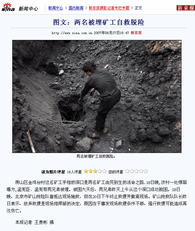 北京门头沟小煤窑矿口坍塌,3名矿工受困遇难 快照