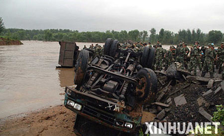 虽然有党中央的坚强领导、全国人民的支持、三军将士的英勇作战以及舟桥旅官兵的日夜封堵,但由于洪魔力大,溃口水流湍急,投下沙包、石块、铁笼等填料后几乎全部被水冲走,影踪全无,甚至在情急之下不惜代价沉车沉船也难有收效,溃口大都无法及时堵上而造成财产的巨大损失和人员伤亡。