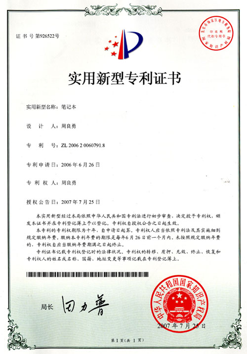 实用新型专利证书